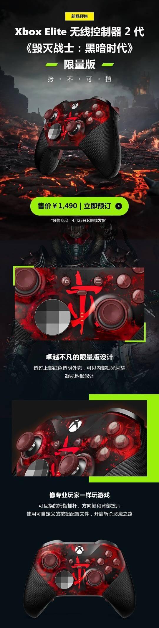 微软官方近期发布了一则激动人心的消息,宣布Xbox《毁灭战士:黑暗时代》联名款精英手柄2代已正式开启预售,定价为1490元人民币。
