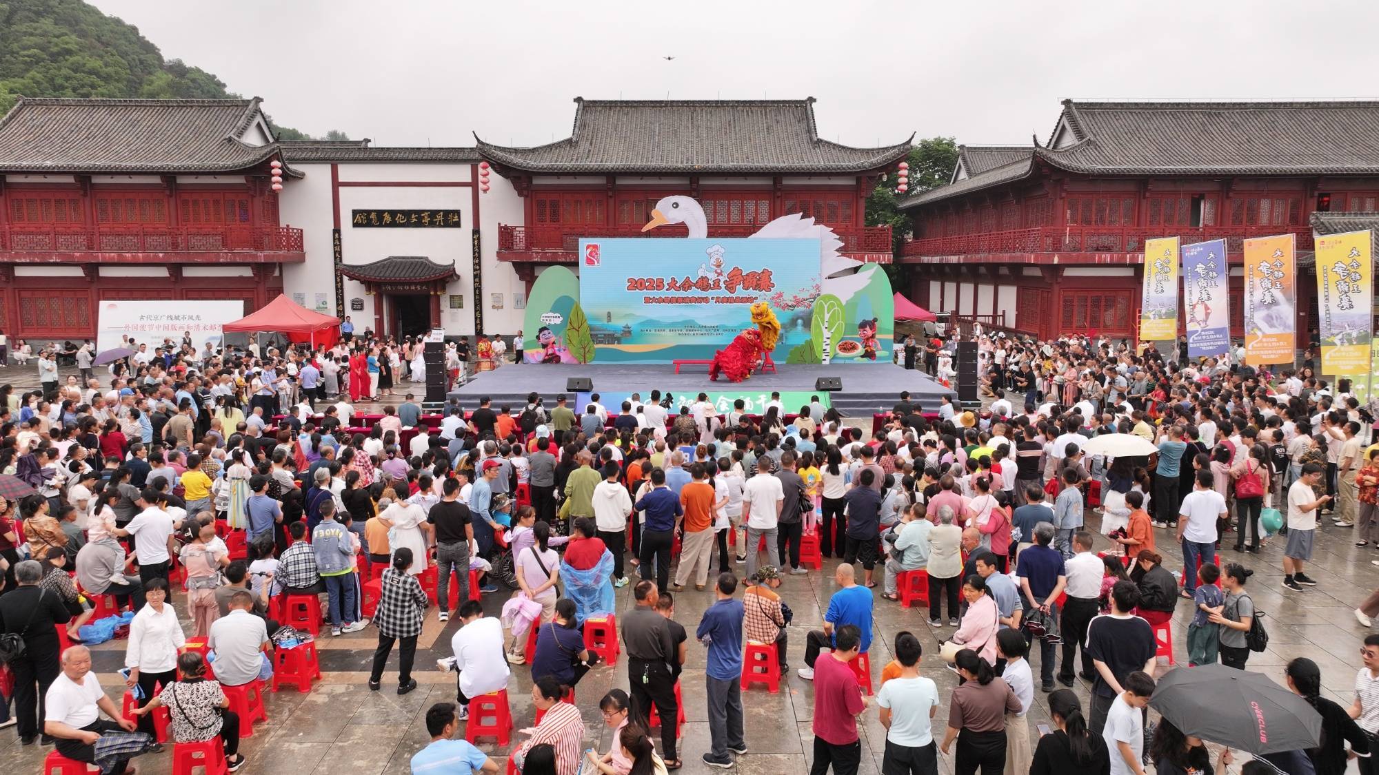 比赛间隙,“咏鹅”诗词接龙、“鹅鹅鹅”趣味绕口令等互动游戏引来阵阵欢笑。在趣味挑战、文化展演区,“鹅”歌大赛选手们用改编歌曲将此次活动推向了高潮;鹅主题Cosplay巡游队伍中,身着白鹅、哪吒、敖丙等造型的表演者与游客亲密互动;网络主播们则通过直播平台,向全国网友推介大余美食。