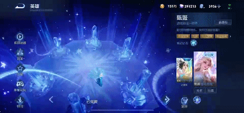 以上是展现动画,在响起经典的背景音乐《Let it go》后,甄姬化身为的艾莎,将会勇敢的策马驰骋,唤醒那颗无拘的心,模型也高度还原了动画里的形象,包括金发+白裙+冰晶马。
