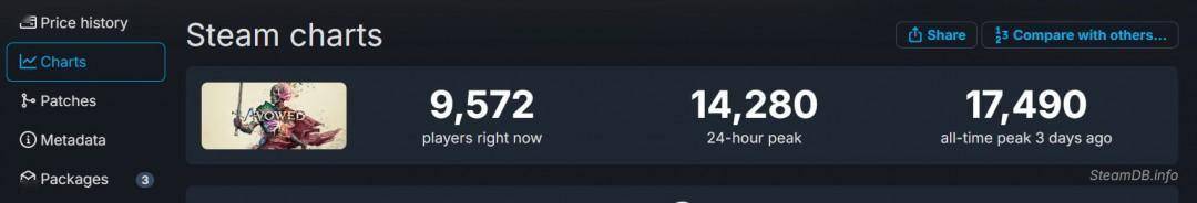 对比来说,同样是RPG的《天国:拯救2》反而在Steam发售多天后出现了逆增长态势。虽然说,这里面XGP的因素很大,但至少从Steam PC版看,《宣誓》并没有引来更多PC玩家游玩。