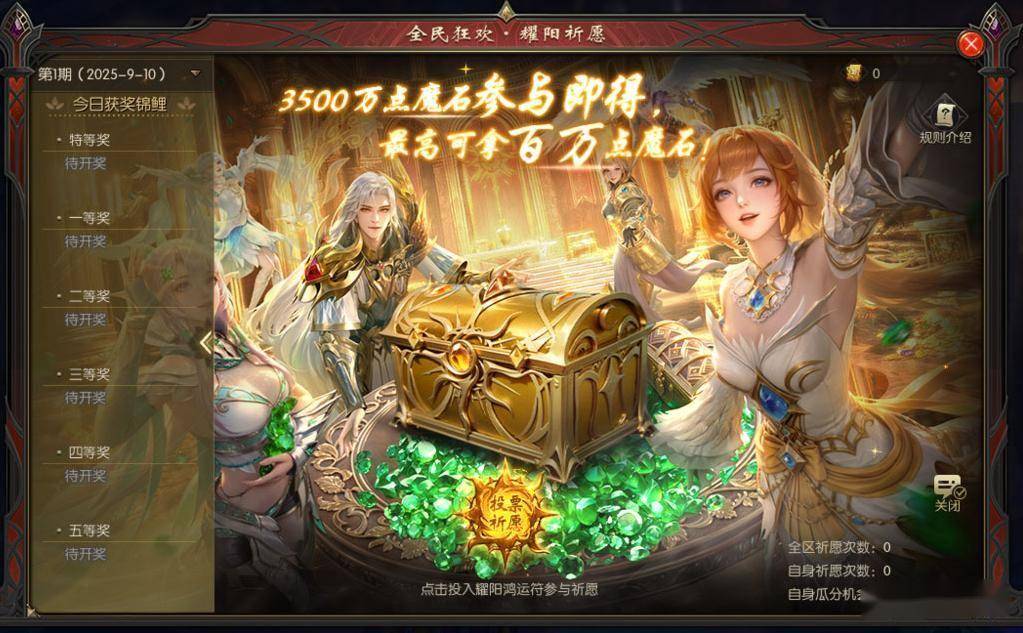 更重要的是,这活动不是纯看脸,还设有保底机制!只要你投入耀阳鸿运符【赠】,就必定能获得魔石奖励。除了祈愿奖池之外,全服还设有5期瓜分奖池,每期200万点魔石,将根据你累计投入的符数量按比例分配。简单来说,你投的耀阳鸿运符【赠】,分得就越多!唯一需要注意的是,参与门槛为封魔之力达到76000,还没达标的玩家请抓紧提升。