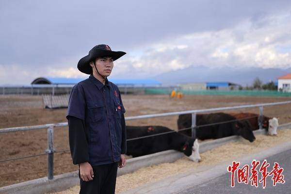 9月10日,新疆博尔塔拉蒙古自治州博乐市,新疆天莱农牧集团股份有限公司养殖场,20岁的撇依力·叶尔加义在牛栏前。他是伊犁哈萨克自治州新源县人,在伊犁职业技术学院畜牧兽医专业就读,明年即将毕业。通过校企合作政策,加上自身的专业兴趣,他来到该公司实习,他认为这里的工作环境很适合自己,未来打算留下。中青报·中青网记者 曲俊燕/摄