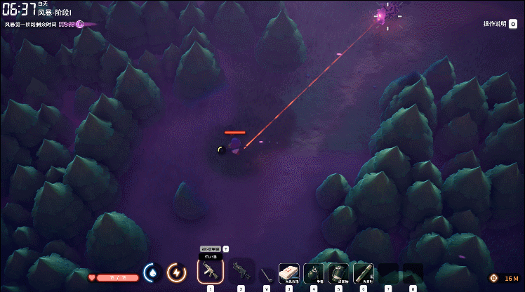 比如夜晚不仅视野范围大幅缩小,还会遭遇强力的机械蜘蛛,而在风暴天气下,地图中也会刷新特殊的敌人,并且如果玩家没有获取特定防护装备,角色还会持续受到伤害。