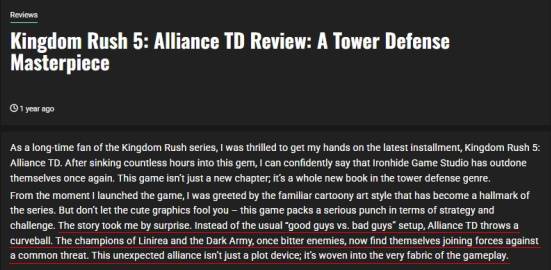 玩家关于《王国保卫战5》叙事与玩法融合的点评