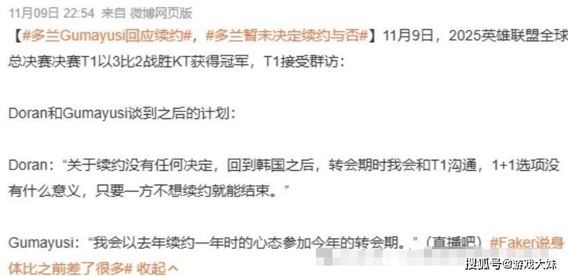 赛后,Faker高举第六座世界冠军奖杯,世界赛助攻数据也突破千次,属于他的传奇再次被写进神话,无论时间如何更迭,他依旧是那个屹立不倒的“中路之神”,然而,在无数人欢呼与泪目的瞬间,T1这次夺冠的旅程中,也有一些令人啼笑皆非的小插曲——比如“Doran青钢影事件”。
