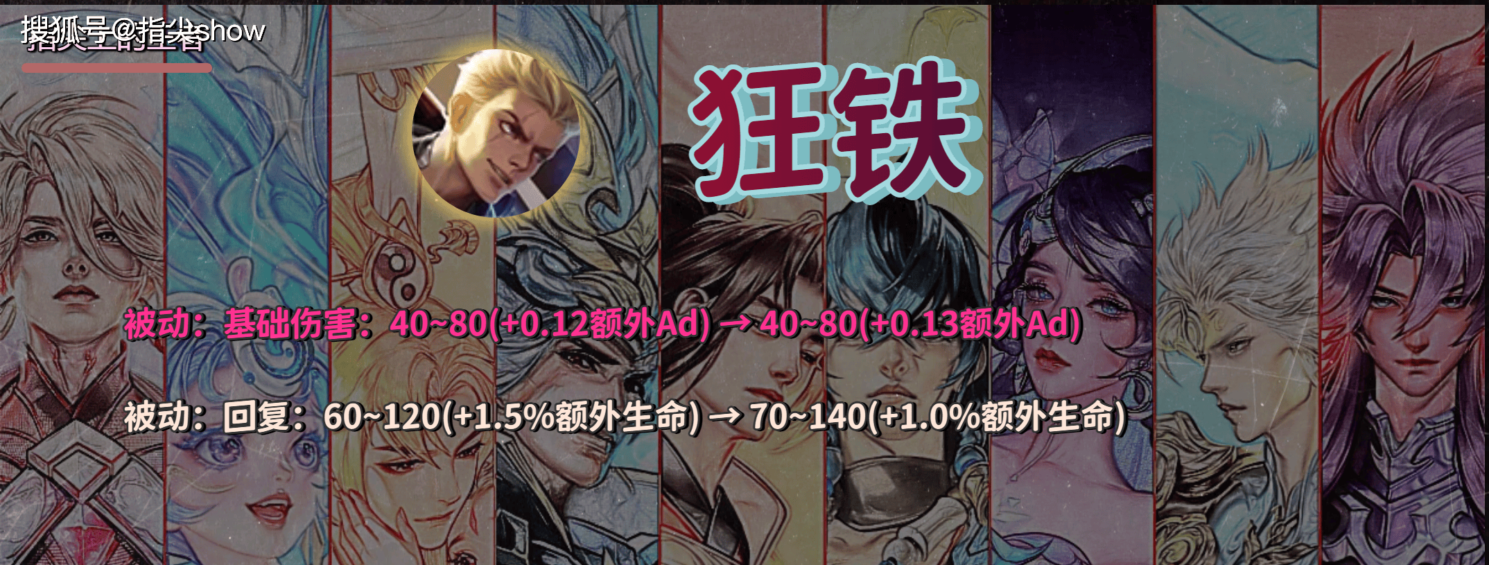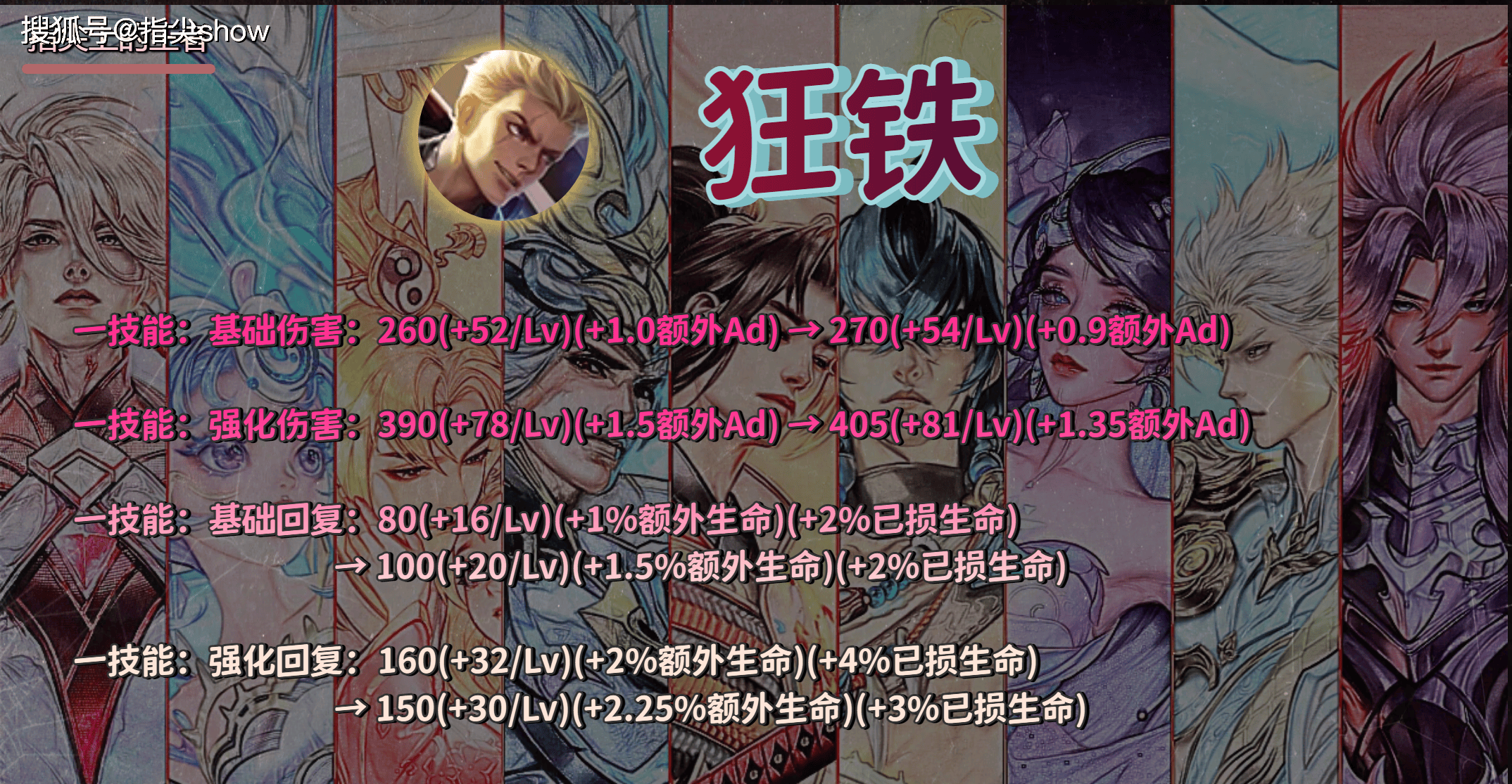 这一点和一技能的调整方向刚好相反,其实正如我昨天跟大家分享的看法一样,将狂铁的属性均摊,1技能的伤害和2技能平衡,大招和1技能的坦度进行平衡。