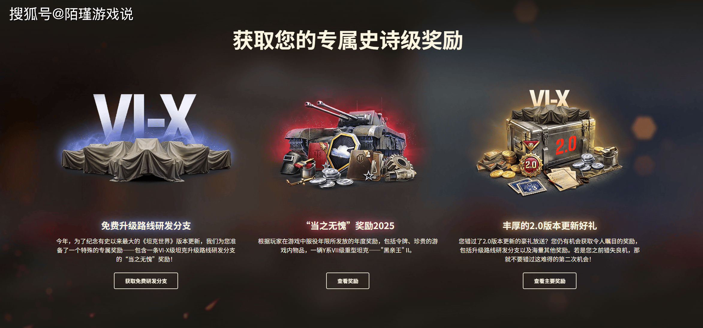 老车长应该都知道,这样力度的福利在《坦克世界》这么多年里,也仅仅在今年9月的2.0版本上线活动中有过一次。而且如果错过了当时的2.0福利,甚至还能在这次“当之无愧”奖励里进行一次补领,这样的福利力度说是“村里发金条了”也毫不违和!