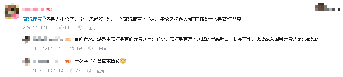 在这条PV发布后到现在,已经获得了将近600万播放,引发了玩家热议。有人认为画面不错,但也有人认为风格太割裂。毕竟从真实且复杂的历史经纬到中国游戏史本身,都没有完善的想象过国潮+蒸汽朋克这个组合的作品。