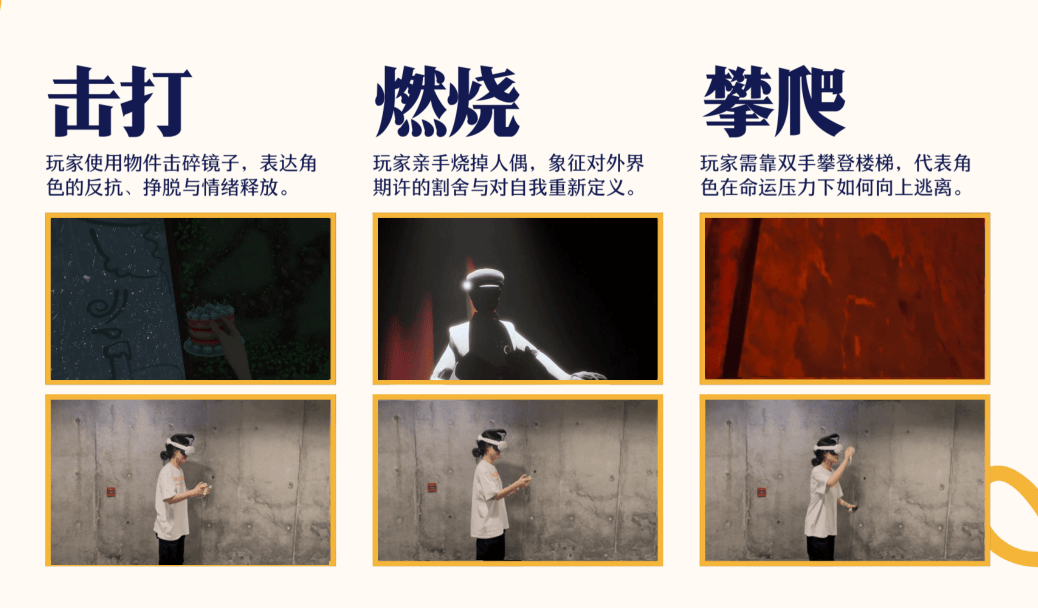 游戏最大亮点为具身交互设计,玩家需身体参与如击打、燃烧、攀爬等动作,增强沉浸与共情。目前游戏的开发进度约40%,已完成3名角色内容,参与多次展会试玩超500人次。商业模式包括C端Steam买断、线下大空间按次收费及B端艺术文旅合作。项目已上线Steam页面,海外关注度较高。