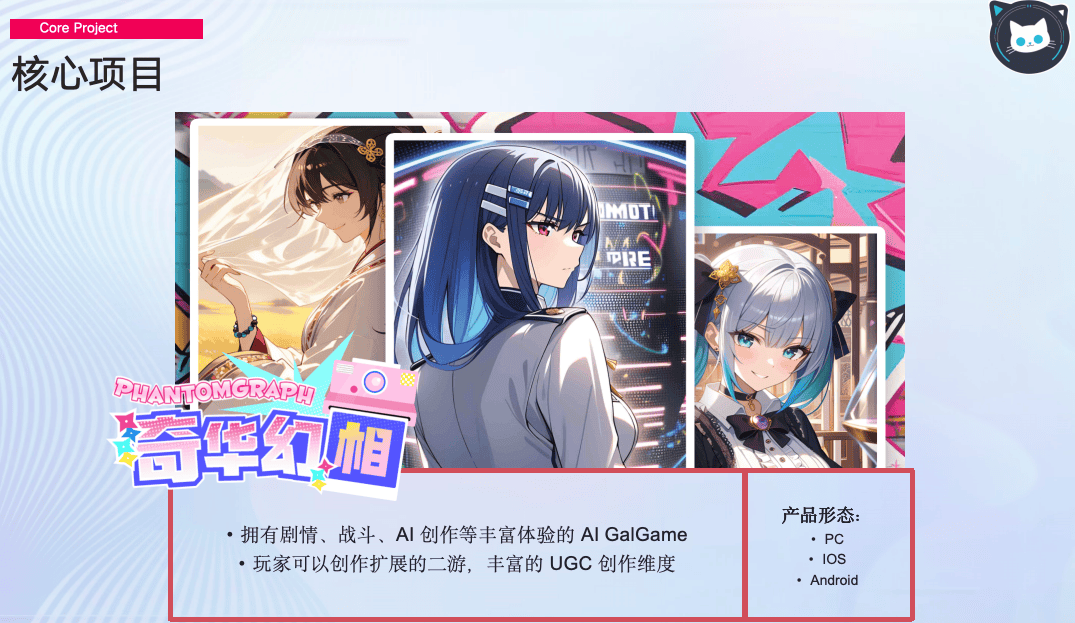 《奇华幻相》是一款融合AI驱动玩法的二次元卡牌游戏。该作在提供剧情与核心战斗等传统二次元体验的同时,深度结合了生成式AI技术,支持玩家在卡牌对战之外,自由进行换装、配料、合照及动画等内容的DIY创作。