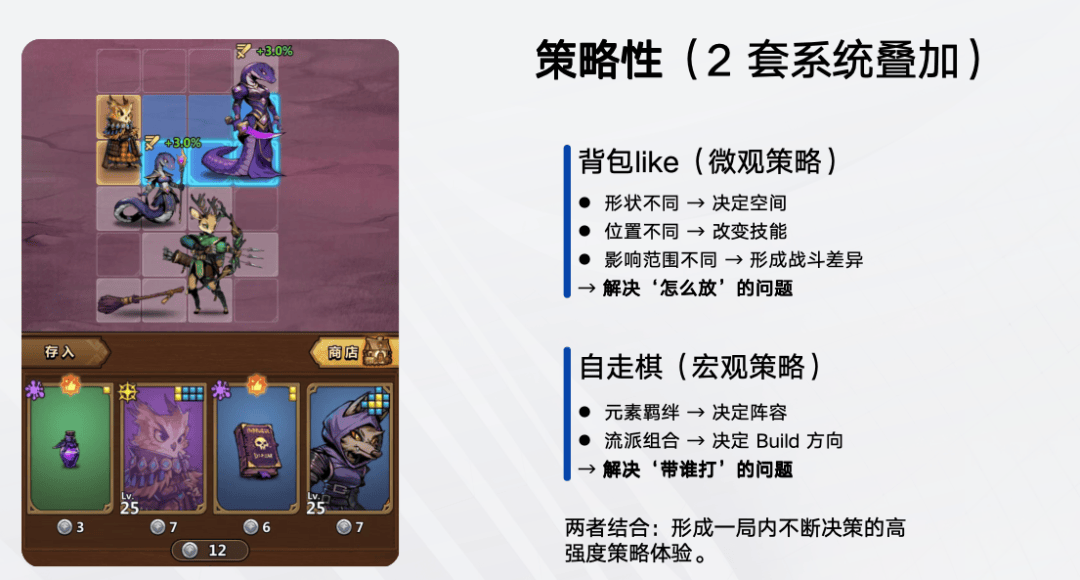 《兽族对决》是一款卡牌养成冒险探索游戏。玩家将化身为一名勇敢的冒险者,踏入未知的领域,揭开古老的秘密,迎接史诗级的战斗。游戏玩法融合了背包构建、卡牌养成、自走棋与Roguelike等。游戏系统强调简洁长线,聚焦周期性内容与竞技社交;商业化设计则兼顾各层级玩家需求。