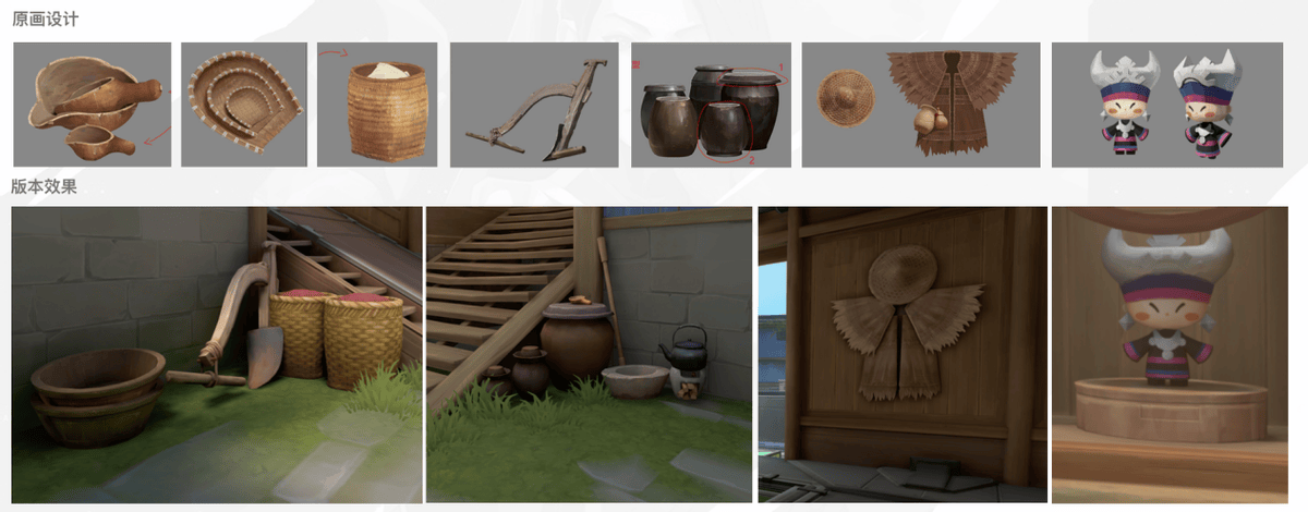 以“古寨”这张原创地图为例,设计师巧妙地运用冷暖色调清晰区分攻守双方,甚至连墙壁上的绘画也各有不同。为了保持色调统一,避免干扰游戏进程,制作组还对苗寨传统屋檐样式进行了改良,舍弃了略显突兀的白色,选用与地图整体风格更契合的绿色。这种细节上的处理不仅提升了地图的美观度,更确保了玩家在游戏中的视觉体验。