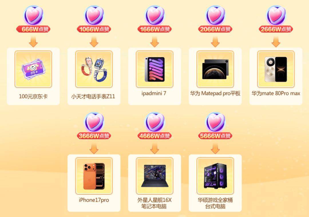 规则:直播间累计点赞达成666万、1066万、1666万…直至5666万,即可逐档解锁对应奖池!