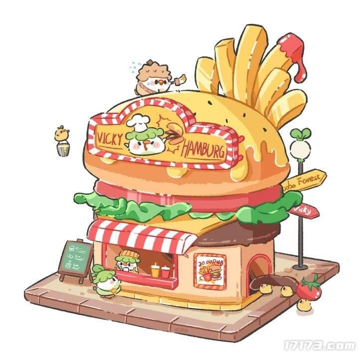 “小菜鸡”最初是一个表情包IP,因为官方发布的插图里经常有各种可爱的建筑出现,例如汽水工厂,榴莲烤箱屋,快餐小卖部等,因此经常就有粉丝求他们把小菜鸡做成建筑装修玩法的游戏。