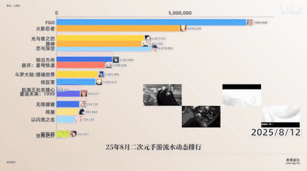 其次,跳出女性向,往更大的二游、内容型游戏范畴来看,《恋与深空》完全能和一众二游头部产品打得有来有回,甚至在版本更新时做到「力压群雄」,和其他产品拉开不小的流水差距。