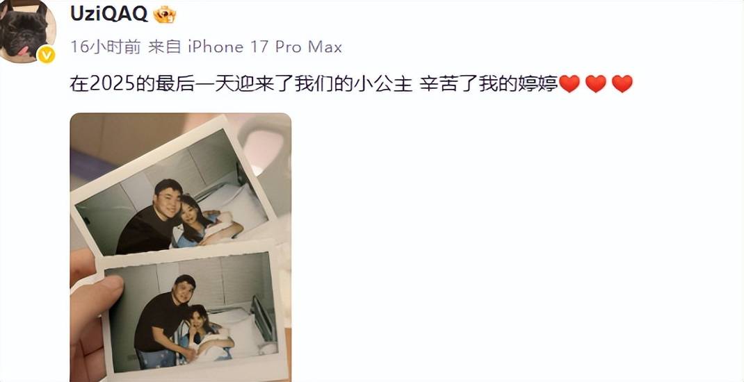 不过虽然职业赛场上失利,但是在人生之路上,UZI太成功了,年少成名,儿女双全,小说的剧本,就在UZI身上发生了。没错,UZI发布了最新的消息,消失了这么久,原来是有大事,UZI官宣喜得爱女,还晒出了合影,辛苦老婆了,满脸笑容,为UZI开心。