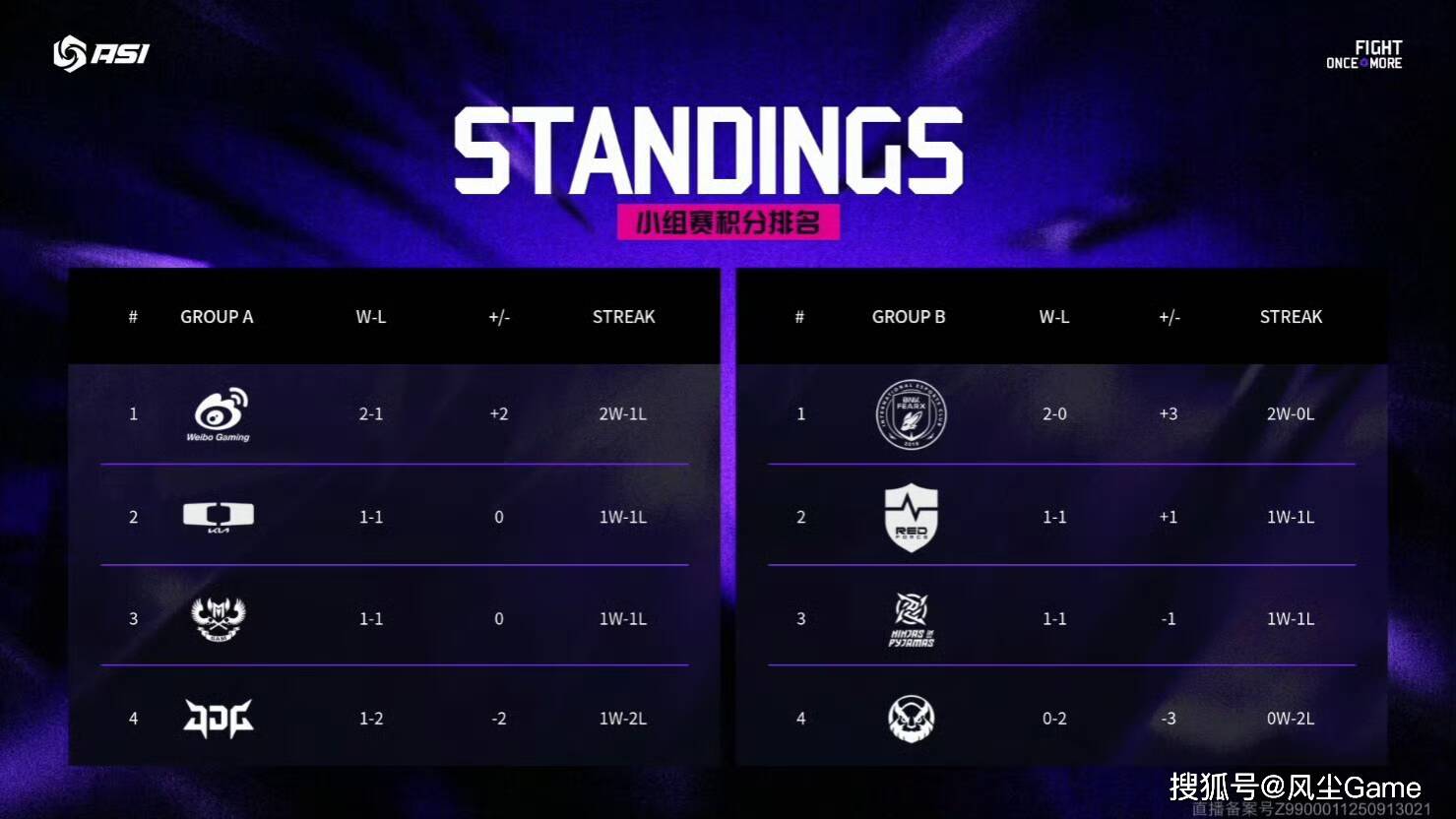 微博击败DK后,战绩来到2-1,一共只打三场的情况下,2分已经稳稳晋级了,同时打进淘汰赛的,还有2-0的BFX,京东输给GAM,战绩来到1-2,和 MVKE一样,确定无缘淘汰赛,接下来的这三场比赛,BFX打MVKE,不影响晋级形势,DK和GAM,NIP和NS的胜者,将晋级到淘汰赛。