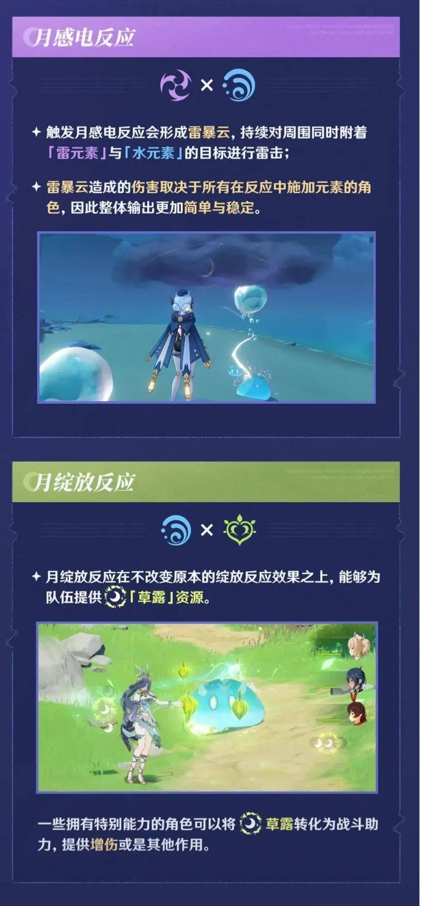 比如最近的两个新角色:伊涅芙和菈乌玛,分别是电属性和草属性的角色。前者可以触发月感电,后者则可以触发月绽放。和常规的水雷感电和水草绽放相比,二者不仅伤害更高,还能产生暴击,并被爆伤属性加成。