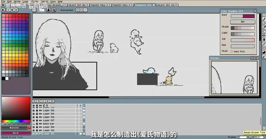 所以他使用的其实都是非常现成、甚至带有些“傻瓜”属性的工具。手绘像素图用的是Aseprite,游戏开发用的则是RPGMaker。