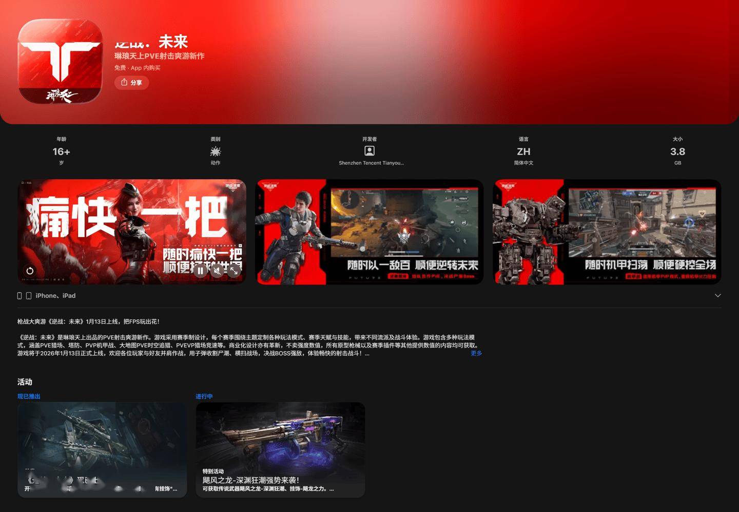 此外,《逆战:未来》官方今天还在微博宣布荣登苹果 iOS 免费榜第一,将向全体玩家赠送传说钛金跃迁秘藏 * 1、赛季补给箱 * 5、NZ 券 * 1000 礼物(IT之家注:截至 2026 年 1 月 19 日 24:00)。