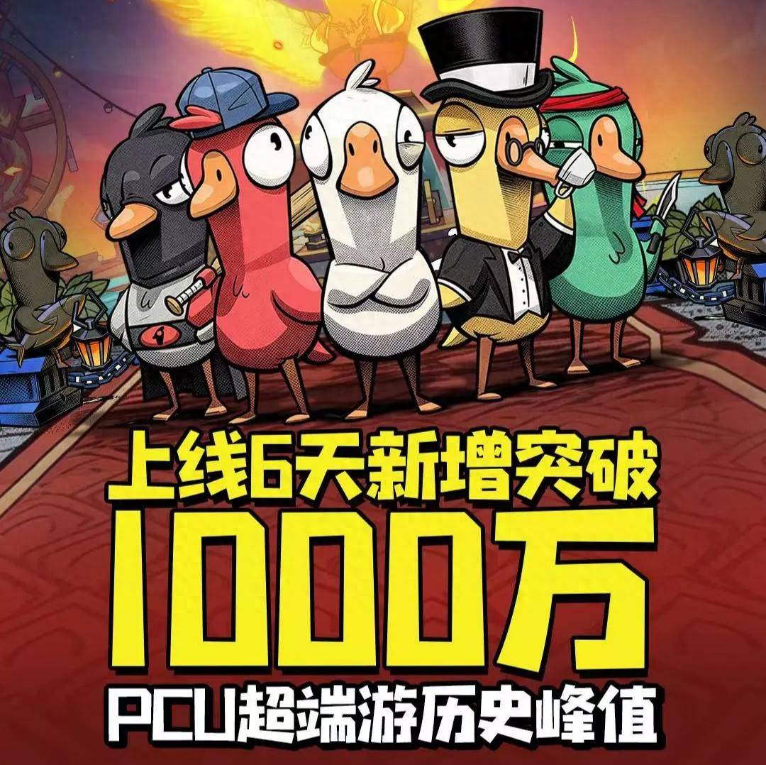 最新的《鹅鸭杀》手游由虎牙与金山世游联合发行,官方数据显示,上线6日《鹅鸭杀》新增用户突破千万,同时最高在线人数(PCU)已超越Steam端历史峰值。