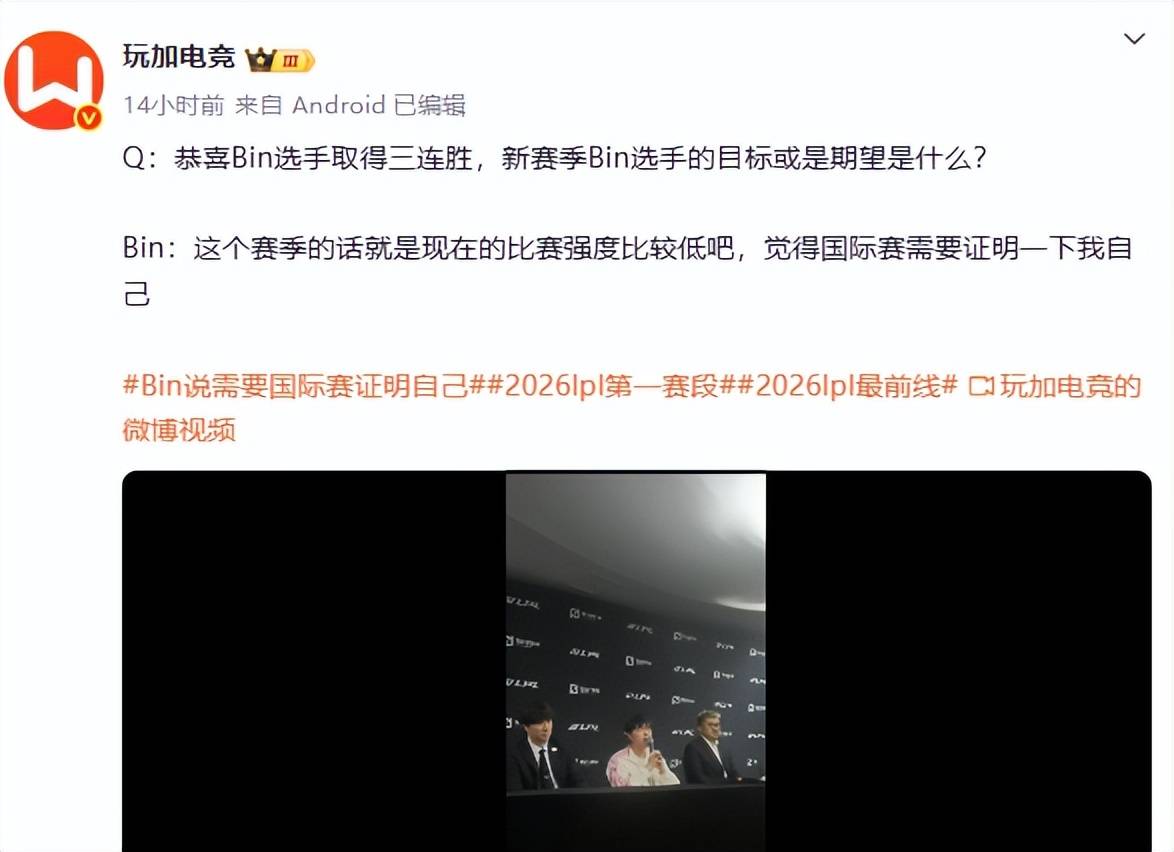 BLG豪取三连胜之后,也许是回来了,但是还是要看后续的,毕竟联赛才刚刚开始。但是有一点可以肯定的是,Bin彻底回来了,熟悉的Bin大哥,赛后采访和媒体采访,自信拉满,各种天秀回答,网友们都直呼Bin大哥太自信了。