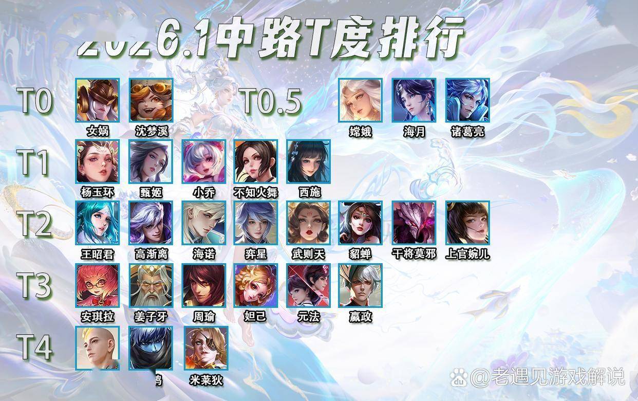 1月底中路T度排行,5大T0大爹出现,全图技能为何女娲更强?