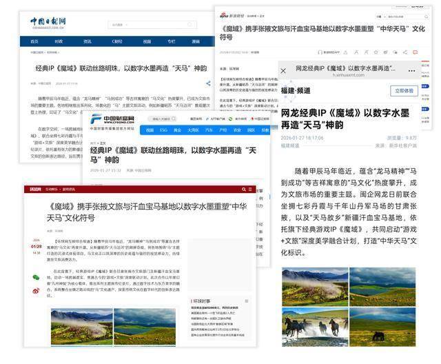 甲辰马年将至,蕴含吉祥寓意的“马文化”持续升温,成为连接传统与现代的文化热点。在此背景下,经典游戏IP《魔域》于1月23日正式上线的水墨风马年幻兽——“九州神骏”系列,因其与甘肃张掖、新疆汗血宝马基地两大文化圣地的深度联动,引发了广泛关注。这场以数字艺术为媒介、旨在活化传统文化的实践,近日获得了新华社、光明网、新京报、中国日报网等权威媒体的集中报道与积极评价,被视为“游戏+文旅”融合创新的一次成功探索。