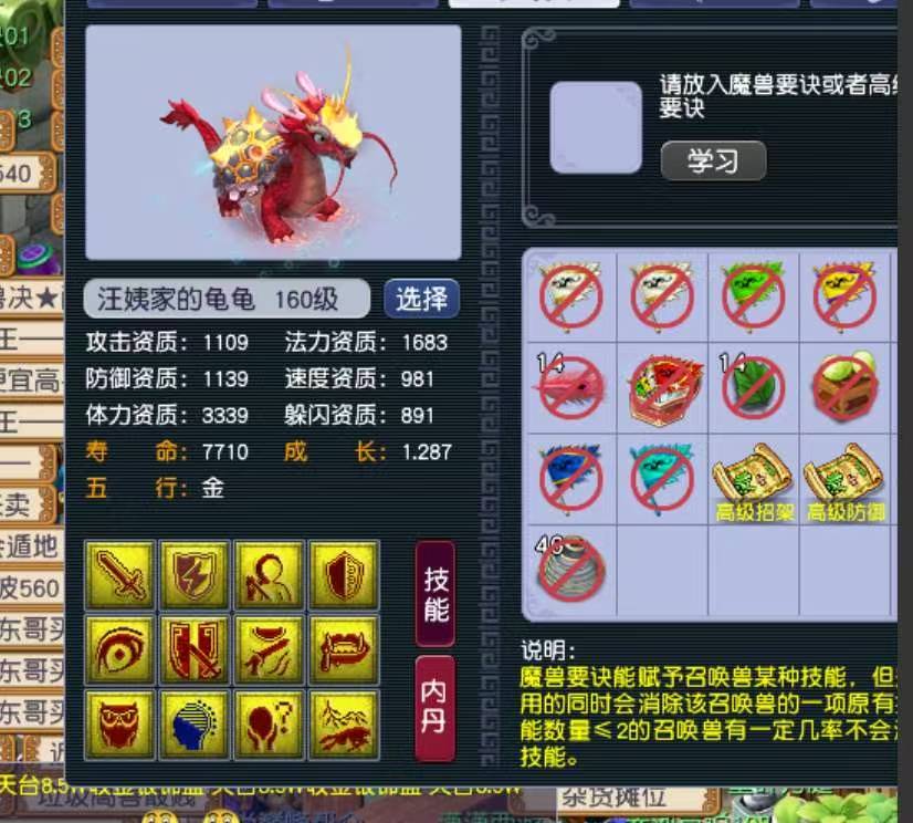 在【畅玩服-无与伦比】中,一位老哥通过一组巅峰炼妖,不仅合出了12技能龙龟,还成功继承了特殊技能法术防御。当时他感觉手气正热,当即决定原地打书,向究极神宠发起冲刺!