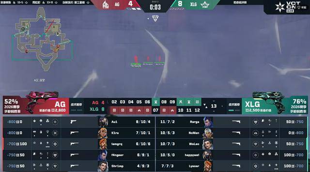 第8回合AG回防A点没有打赢,XLG在残局处理还是非常的稳的,XLG继续拿分。