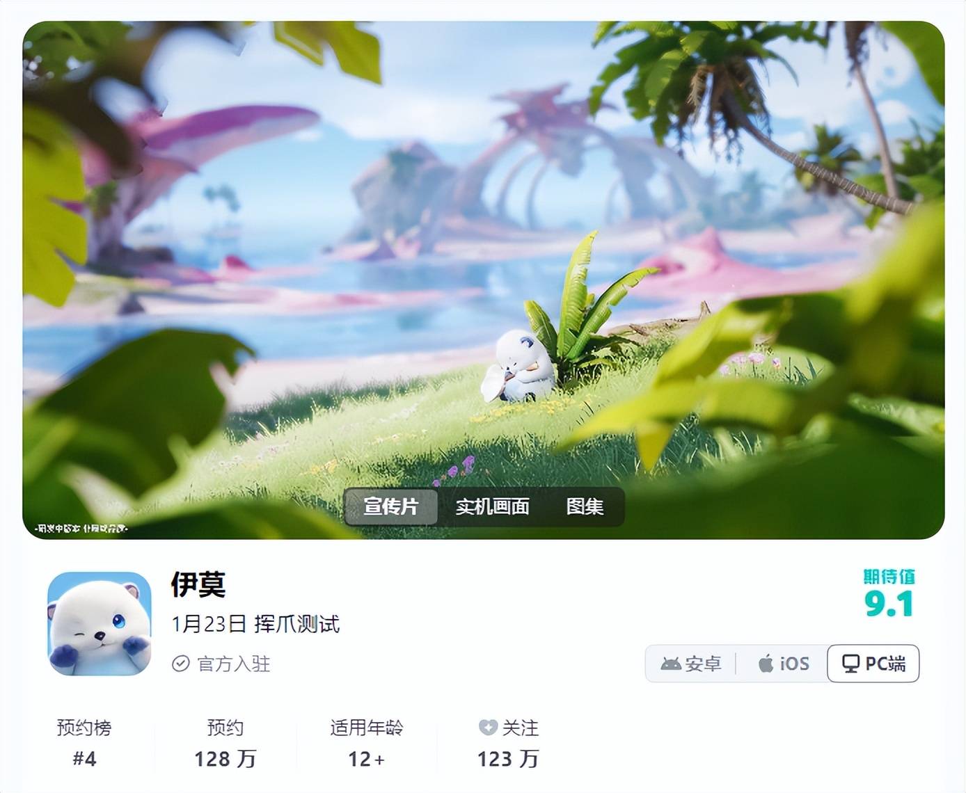 自曝光以来,《伊莫》一直有颇高的热度。回溯至2025年7月首测,其评分一度是TapTap同期新游前列。2025年,《伊莫》以105万预约量跻身“TapTap年度预约榜TOP7”,截至二测开启前夕,全平台预约量已突破128万,成为赛道内不可忽视的潜力股。