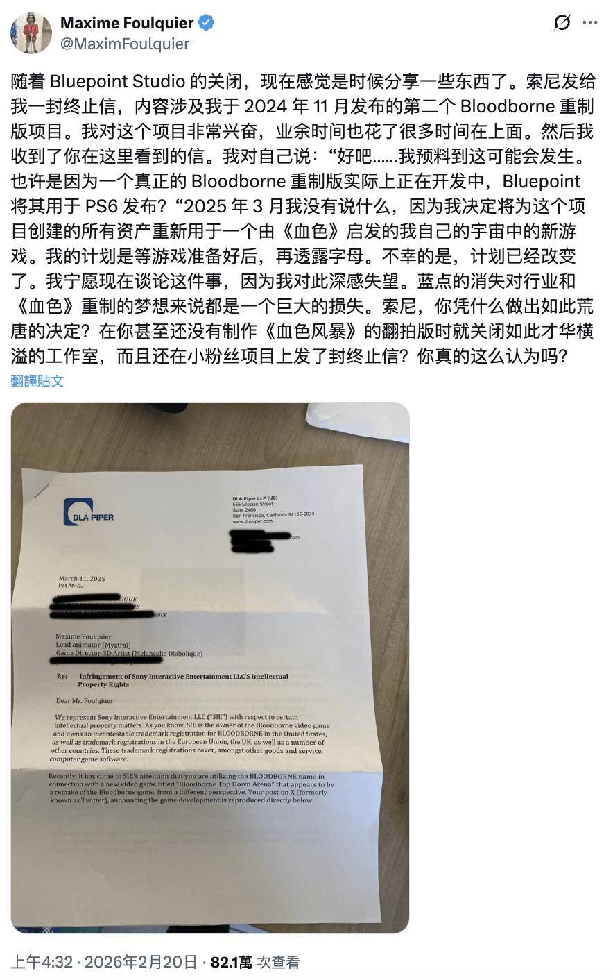 IT之家注意到,Maxime Foulquier 称他对索尼的决定感到不满、愤怒,当初索尼联系他时,他一度还对官方 PS5 或 PS6 重制版抱有期待,不过今天的公告像是压死骆驼的最后一根稻草,他最终选择在保持沉默接近一年后公布律师函。