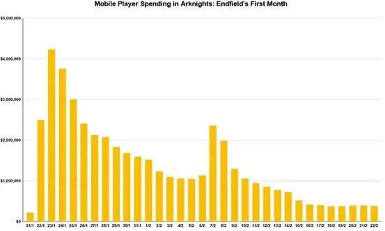 终末地上线首月全球移动端吸金3... 鹰角网络的新作《明日方舟:终末地》(Arknights: Endfield)自1月22日上线,距今已...