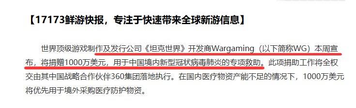 《坦克世界》是俄罗斯开发商Wargaming (WG)的门面之作,如果不是《坦克世界》的玩家,对这家公司有些陌生。唯一的印象可能还是在武汉疫情期间,这家公司慷慨地向中国捐献1000万美元协助防疫。