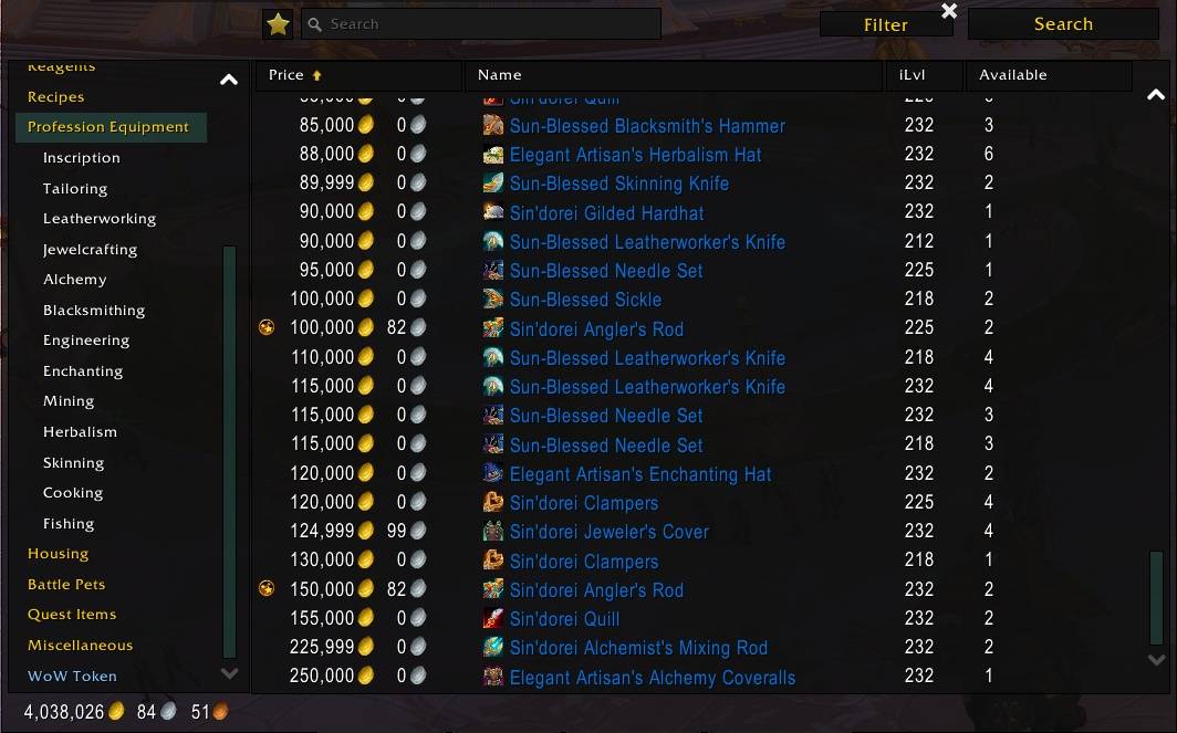 随着《魔兽世界》“至暗之夜”的上线,蓝色专业技能装备改为装备绑定,可在拍卖行买卖,提供巨大商机。