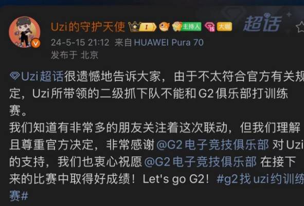 后续Uzi超话主持人解释,公开训练赛不太符合官方有关规定。